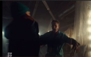 There’s no way to tell what the actual order of events is, but for most of the trailer Wynonna is wearing a silver shirt and I think it’s safe to assume that will be what she’s wearing in Episode 1. We know she was with Nedley when we last saw her, but it looks like she’ll be reunited with other important people pretty early on.